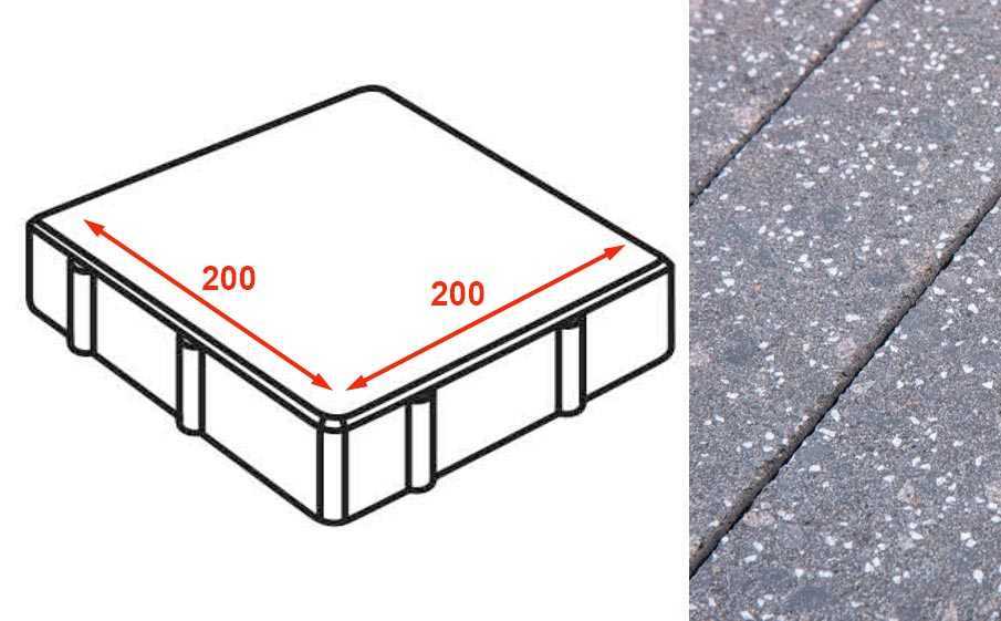 Плита тротуарная Готика Granite FINERRO, квадрат, Ильменит 200x200x80 мм